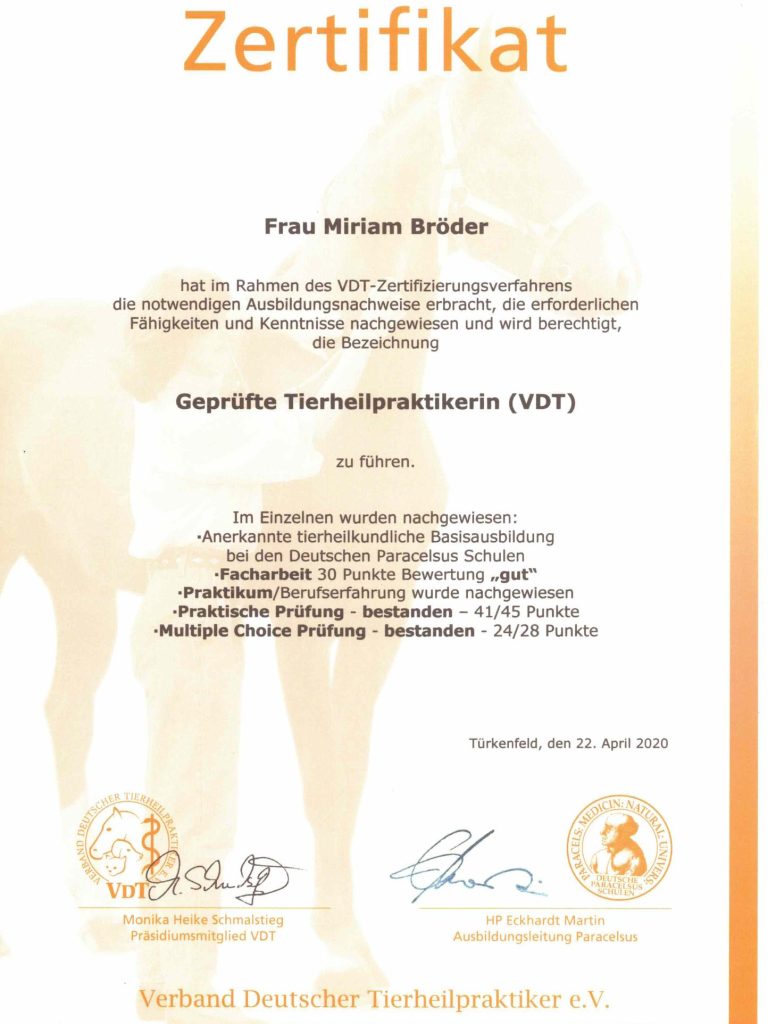 Da ich nicht alle Sparten der Tierheilpraxis überzeugt anwende, habe ich aus der Fachausbildung hauptsächlich das Wissen um die Organsysteme für mich herausgezogen.
