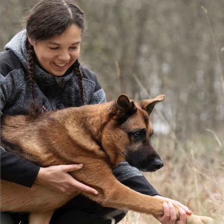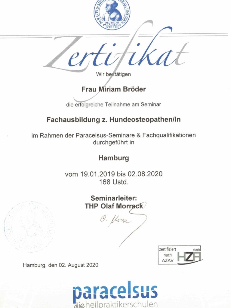 Wie bei den meisten meiner Kolleg*innen hat mich mein eigener Hund auf meinen Weg gebracht. Während der Ausbildung zur Tierheilpraktikerin fiel mir eine Auffälligkeit in seinem Gangbild auf - die röntgenologische Diagnose lautete Hüftgelenks-dyspladie. Spontan entschloss ich mich dazu weiter zu lernen und schloss die Fachausbildungen zur Hundephysiotherapeutin und anschließend zur Hundeosteopathin ab.